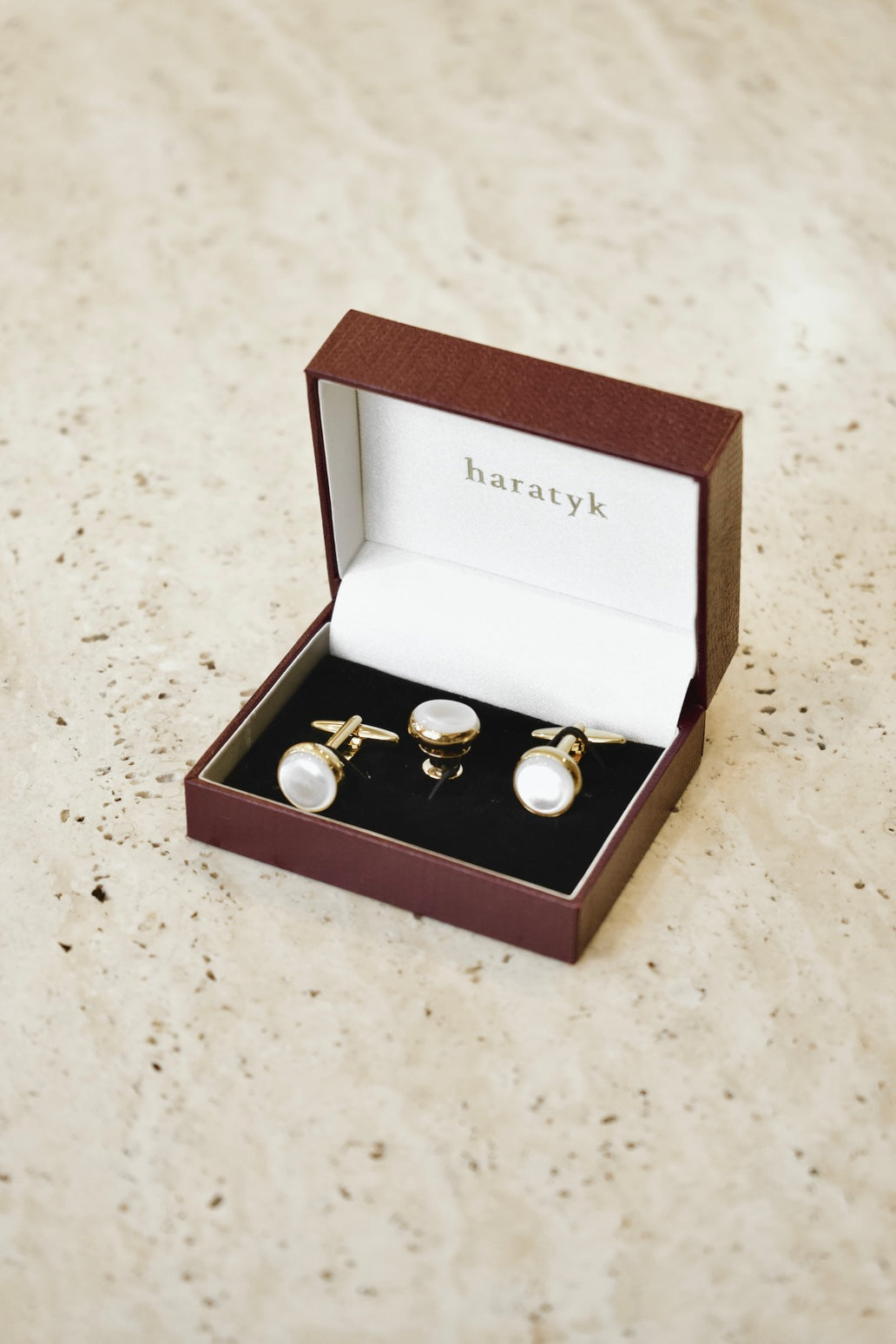 Dbając o spójność całej stylizacji warto zadbać o najlepszej jakości akcesoria. Nasze spinki do mankietów zostały wykonane z pozłacanej stali nierdzewnej, a w środku wypełnione są masą perłową lub wyjątkowymi kamieniami.